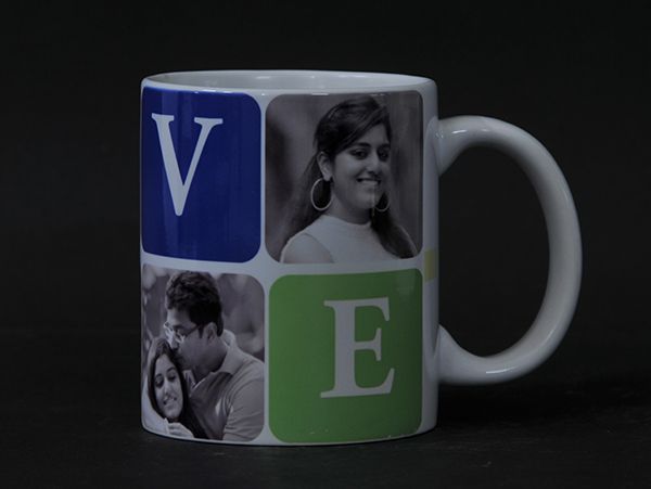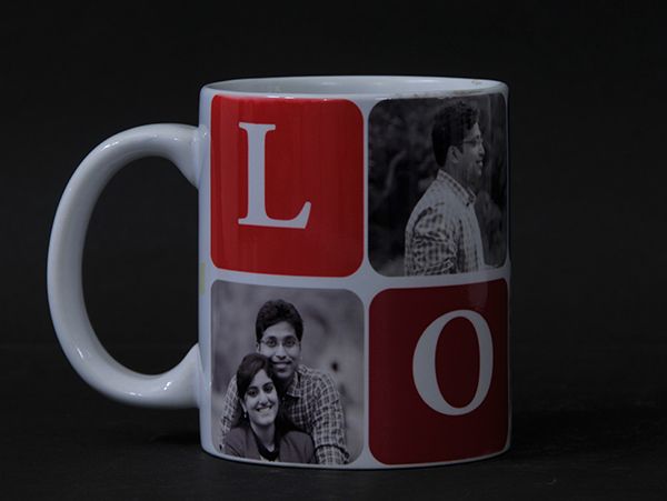 Personalize your new photo mug and enjoy a cozy cup together at home.The LOVE design has the 4 letters printed boldly in red, maroon, blue and green To make it look unique we have kept the pictures in black and white. This mug is combination of fun and functionality.