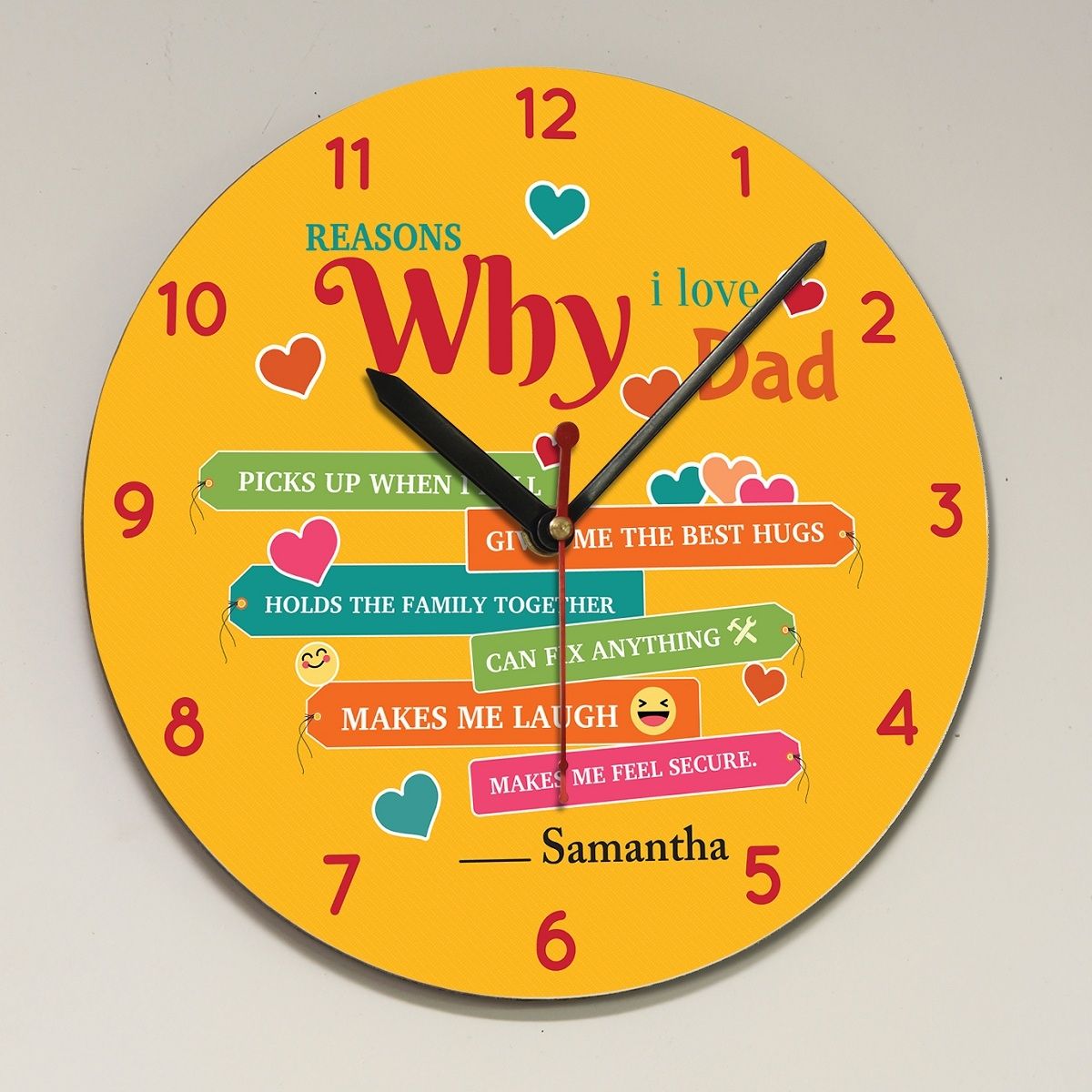 Father gives you many reasons to be happy. Gift this wall clock and let him know the few reasons for which you adored him and see him overwhelmed whenever he checks out the time. Customize the clock with the sender's name. Our personalized clocks comes in 4 different sizes and in round or square shape.