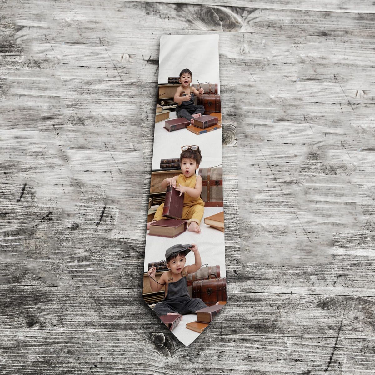 Beautiful collage on a necktie using your kids' pics or grandkids photos. A great gifting idea for fathers day. Our printed tie is sure to touch the heart of the recipient.