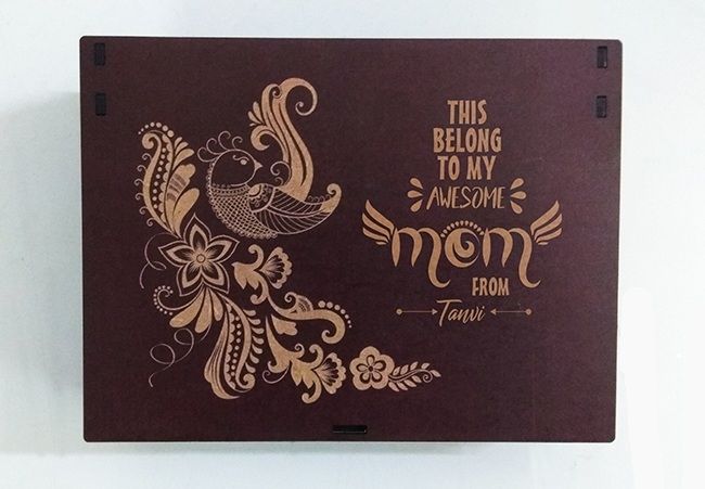 A beautiful square wooden laser cut box for your dear mother for mother's day or for her birthday. Delivered to Ahmedabad and across India.